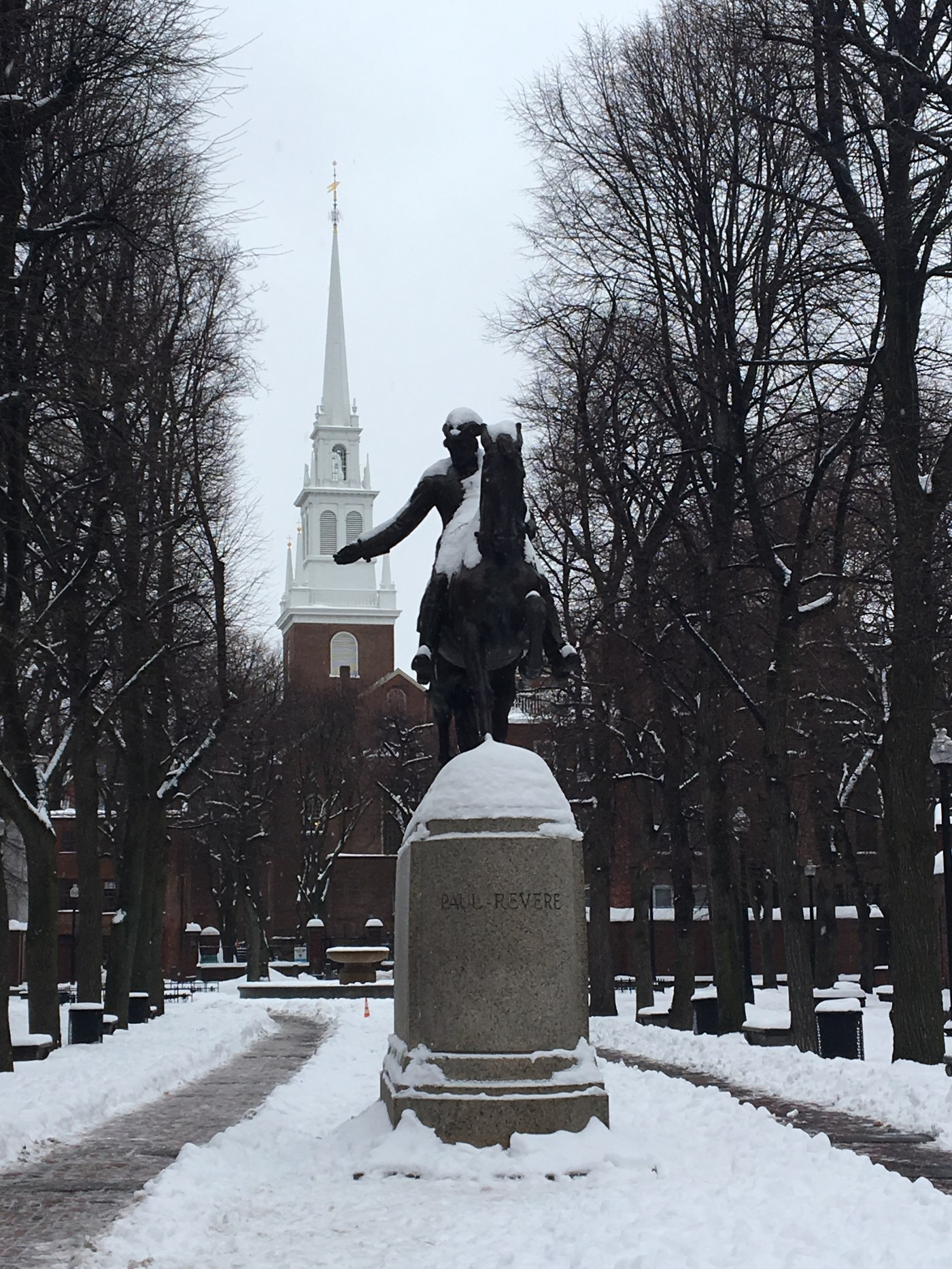 Being a history lover, my primary goal for this trip was to walk the Freedom Trail in its entirety. This walking path throughout the city connects all of Boston’s key historic sites. Snowflakes were already falling as I began my journey at the visitor center at Boston Common, the start of the Freedom Trail. The city was already covered by a foot (or more) of snow that had fallen the day before I came, and although it prohibited me from fully venturing into some of the locations on the trail such as the Old Granary and King’s Chapel Burying Grounds, the snow made for some great photos.