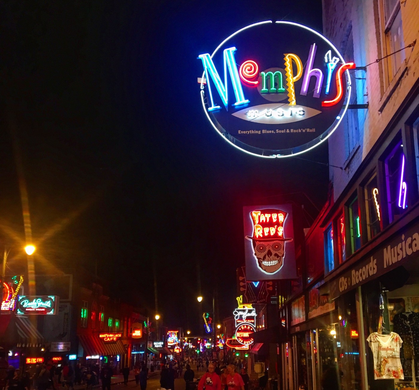 Admittedly I can’t say I ever knew all that much about the city of Memphis other than it being home to Elvis Presley’s Graceland. And to be honest I can’t say I ever had a desire to visit up until a few months ago. In my travel planning for Nashville I came across a blog post about Memphis and was intrigued by pictures of the colorful lights of Beale Street. What the heck… it was close enough to Nashville, so why not check it out?