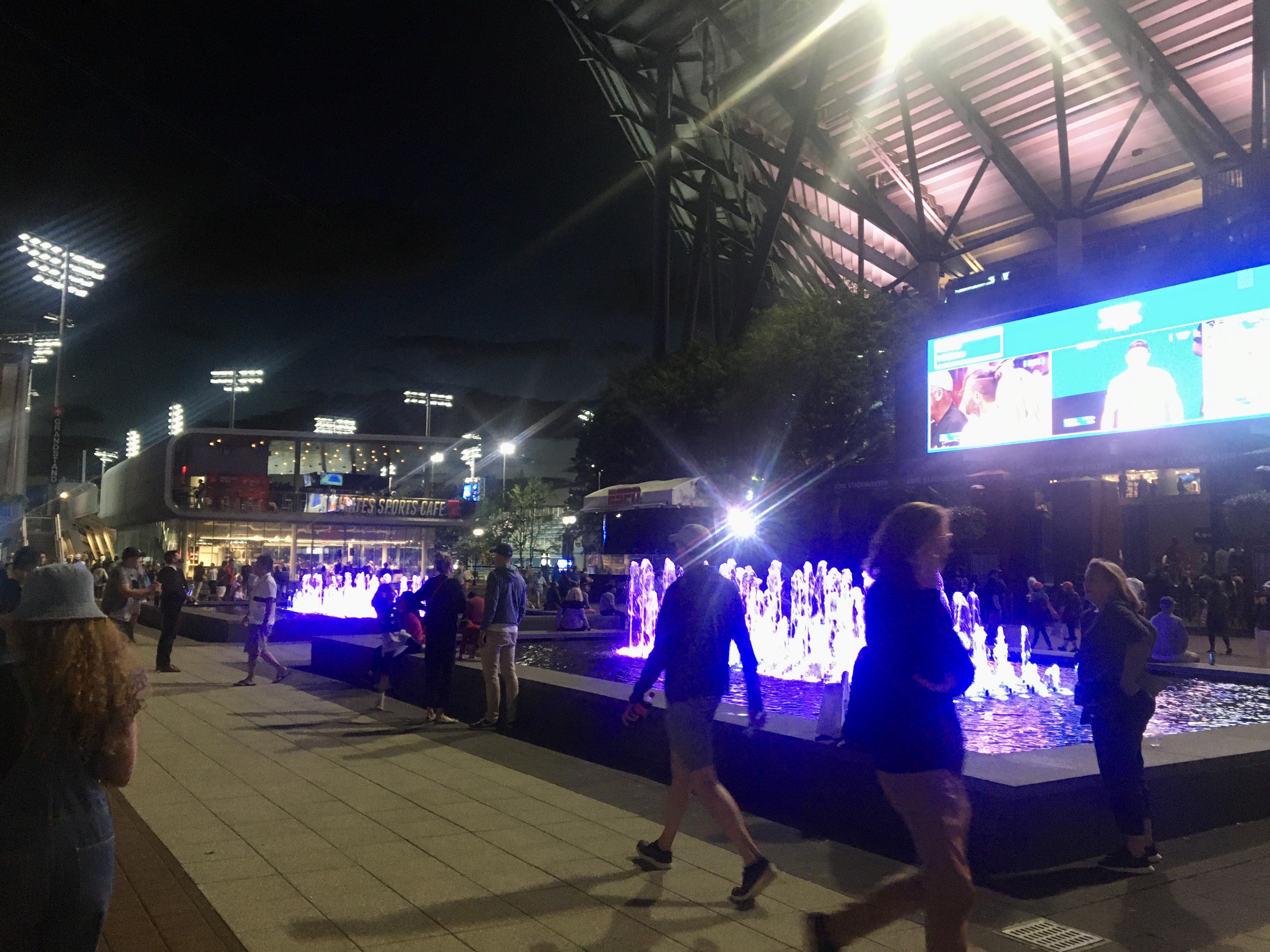 In the evenings there were some notable night session matches going on in Louis Armstrong Stadium that I got to see, including Canadian stars Bianca Andreescu and Denis Shapovalov. On Friday night I enjoyed a lengthy five-set win by Felix Auger-Aliassime followed by the always entertaining hard-hitter Aryna Sabalenka, whose match went until 1:15am! If you’d rather see what’s going on in Ashe but don’t have a night session ticket, the plaza outside the stadium has big screens and a lively atmosphere in the evenings – grab a drink and pull up a seat!