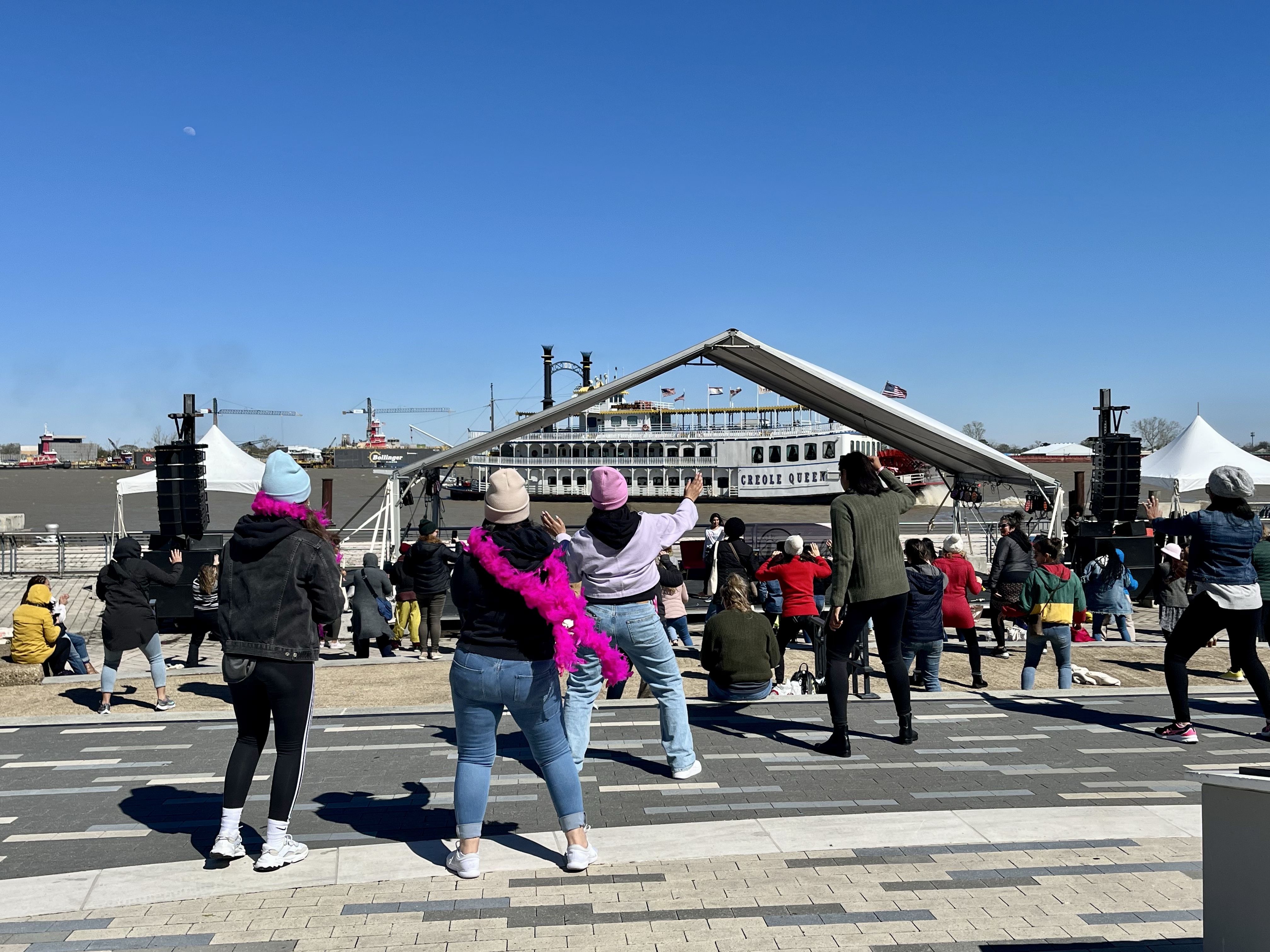The festival was held at the Spanish Plaza along the waterfront of the Mississippi River. The lineup was fabulous and kicked off with Travel Channel host Oneika Raymond. There were opportunities to dance and opportunities to move, with local musicians, a Masala Bhangra Indian dance class, AfroBeat Yoga, and even a Bounce & Twerk Class! There was a cooking demonstration with Indigenous chef Crystal Wahpepah, who was recently nominated for a James Beard Award. There were uplifting and informative panels with travel industry leaders, and a Be Bold Women In Business Pitch Competition. In between main stage sessions, there was a marketplace to wander featuring women-owned businesses and local food vendors. And one of the highlights of the festival – the first day concluded with the Wanderful Woman Parade with a traditional New Orleans brass band and Second Line.