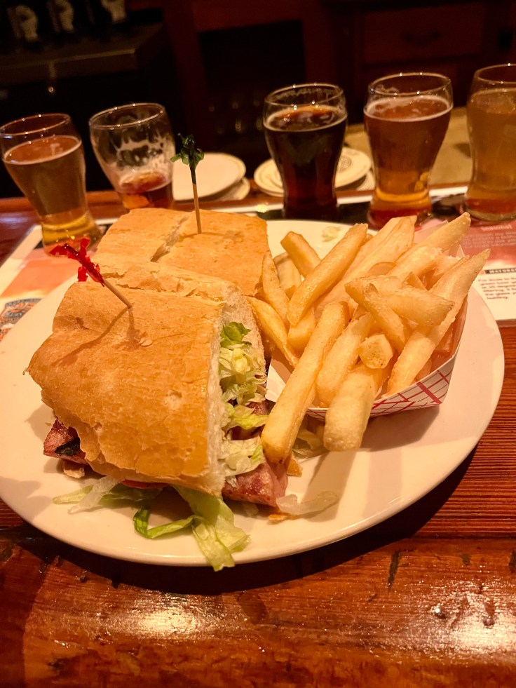 A po’ boy is a New Orleans sandwich served on French bread and including lettuce, tomato, pickles, mayonnaise or remoulade, and one of a wide selection of meat or seafood options. I crossed two things off of my New Orleans foodie bucket list at once by choosing alligator sausage in the po’ boy I got at Crescent City Brewhouse. The alligator sausage was good – to me I couldn’t tell it was alligator, it just tasted like a spiced sausage. Next time in New Orleans I want to try fried alligator!
