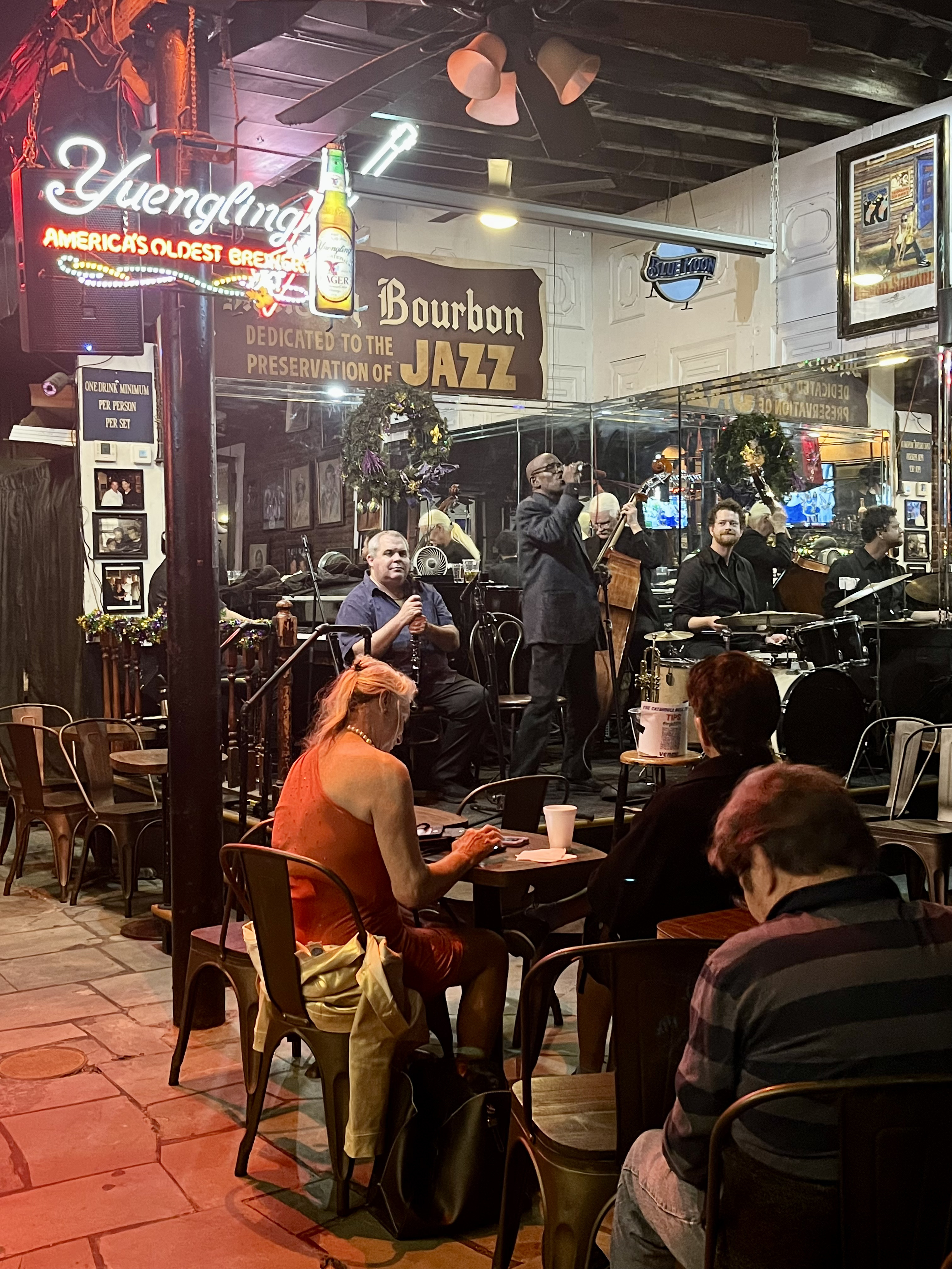 After wandering for a bit with my Absinthe Frappe, I decided I was in the mood for some jazz, and found some at the Maison Bourbon, one of Bourbon Street’s oldest live jazz clubs and one of only two remaining on Bourbon. There is always live jazz to be found here if that’s what you’re in the mood for – it’s an authentic New Orleans experience that you have to do!