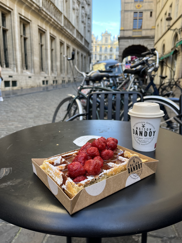 Just off La Grand Place is Maison Dandoy Tearoom, a place to get some truly great waffles. Here you can choose between Liège-style or Brussels-style waffles. The Liège waffles are made with a thicker batter and have more rounded edges, whereas Brussels waffles are fluffier and are rectangular in shape. I opted for the Brussels-style with strawberries and chocolate sauce as my toppings. A great way to start the day!