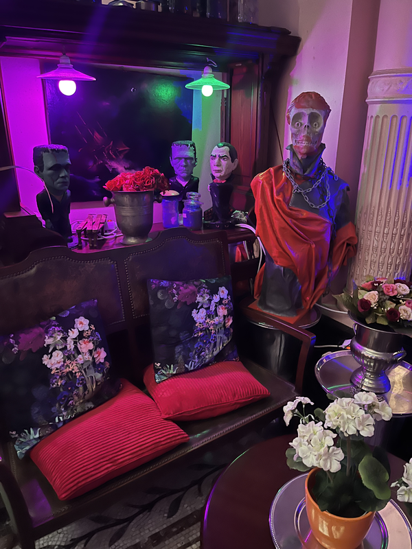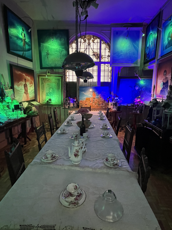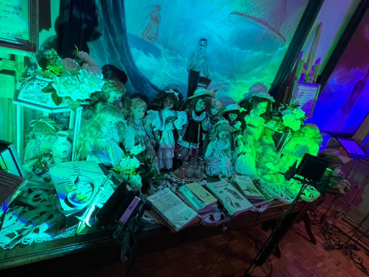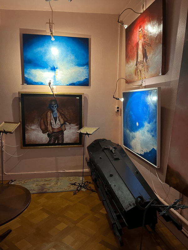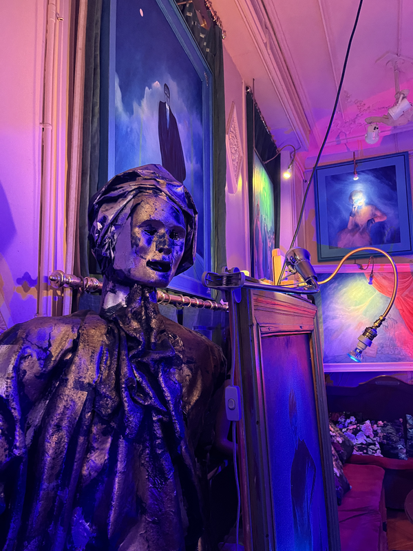 After wandering and taking in more Bruges architecture, as the sun began to set I paid a visit to Retsin’s Lucifernum, a truly unique, mysterious, and fascinating experience. The building is a former Masonic lodge which was bought by artist Willy Retsin, a self-proclaimed vampire. The exterior of the building is adorned with Edgar Allan Poe quotes. When I stepped into the vestibule, there wasn’t a soul in sight, but a small doorbell with instruction to ring. Everything was so eerie I had a small moment of hesitation ringing the doorbell – it felt like the beginning of a horror movie! A few minutes after ringing the doorbell, I was greeted by a Peruvian woman who according to internet sources is Retsin’s wife. I paid my fare which was to include a drink at the end of my tour, and she directed me on how best to tour the house. I wandered from room to room taking it all in. The place is a museum of sorts, full of gothic artwork that is the stuff of nightmares with demonic-looking figures. It’s accompanied by just as eerie of a collection of oddities, including mannequins, dolls, and antique furniture. I was the only one in the place for the majority of the time that I was there, making it even spookier.