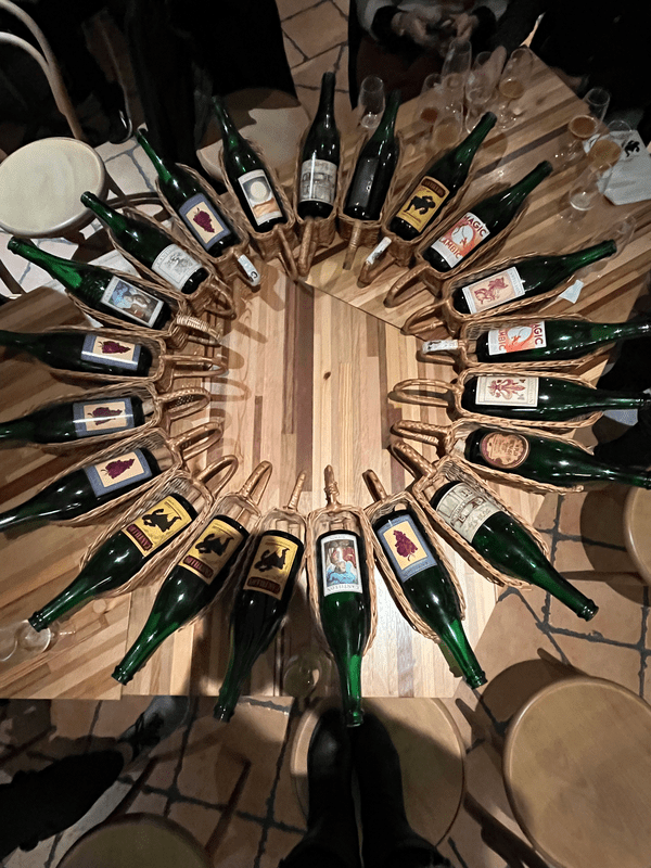 The tour ended with a complimentary tasting in the tasting room. I got my first sample and sat down alone at a table in the corner, only to be asked by a couple of fellow U.S. citizens at a nearby table if I wanted to join them. One of them had been to Cantillon before and explained that this was just the nature of Cantillon – that the tasting room was a social experience. The three of us eventually merged with another table full of visitors from all over the world including a few members of the band Heilung. We had the best time, and it was amazing sitting at a table of at least 12 people with almost as many nationalities represented. We tried just about every beer they had on the list and ended up staying the entire afternoon. Pic of the damage: