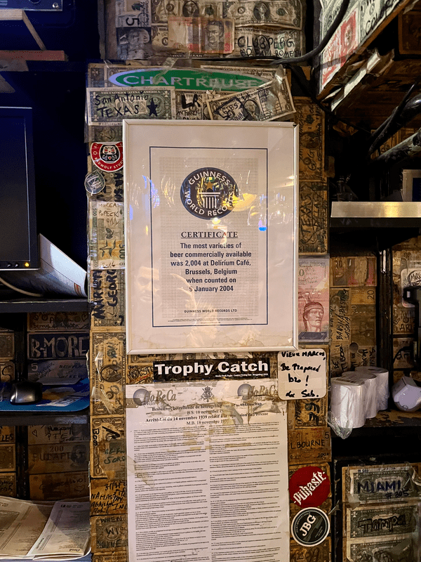 A visit to Brussels for a beer lover must include an evening at Delirium Cafe. It’s the place that holds the Guiness World Record for most beers on tap with 2,004 beers recorded in 2004. I found it to be a bit of a playground for a beer lover. There are several spaces that make up “Delirium Village” – several floors including an outdoor garden area, and the basement where you can see the actual Guiness World Record certificate. The options are endless.