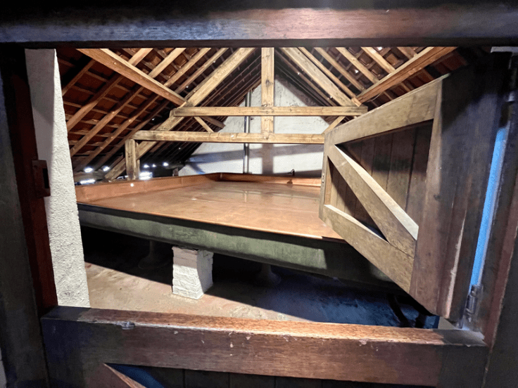 I started my visit by doing the tour through the Museum of the Gueuze, where you learn all about the lambic style of brewing that Cantillon is known for. Lambics are different from other brewing styles due to the use of spontaneous fermentation – in other words, rather than introducing a specific strain of yeast to the beer, the wort is left out in the open to capture whatever natural strains of yeast happen to come in contact with it. The beer is then aged in oak barrels. One tidbit that I found interesting was that I noticed walking around that there were a lot of cobwebs throughout the brewery, and that’s not due to bad housekeeping – it’s intentional. Because of the methods of brewing lambics , the brewery doesn’t want to use chemicals to deter pests, so spiders act as a natural insect trap to keep pests out of the brew.