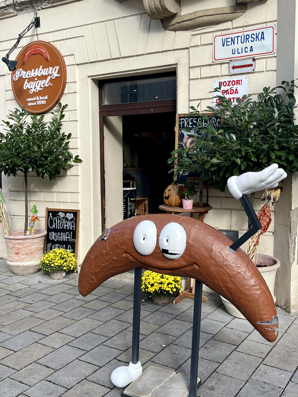 This was another unplanned gem that I discovered once I was on the ground in Bratislava. I’m not a huge breakfast person and often seek out a good spot for a coffee and a pastry, and I was intrigued by this little cafe a few minutes from my hotel with its beat up crescent shaped mascot standing invitingly at the entrance.