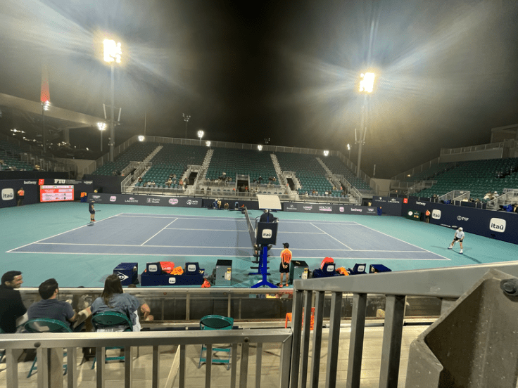 After my stadium session concluded, I did stay on the grounds and enjoy some of the action on the outer courts. I have two favorite memories from the outer court action I saw. The first was watching the late-night thriller between 14th seed Ugo Humbert and Dominik Koepfer. It was the last match on the second-largest court Grandstand, and went on long after play on Stadium Court had concluded for the night. It went to three sets, with the late-night thinned-out crowd rooting the underdog Koepfer to a victory. Neither players are that well-known unless you’re a tennis superfan like me, but man was it some great tennis and fun to watch in the quiet Florida night.
