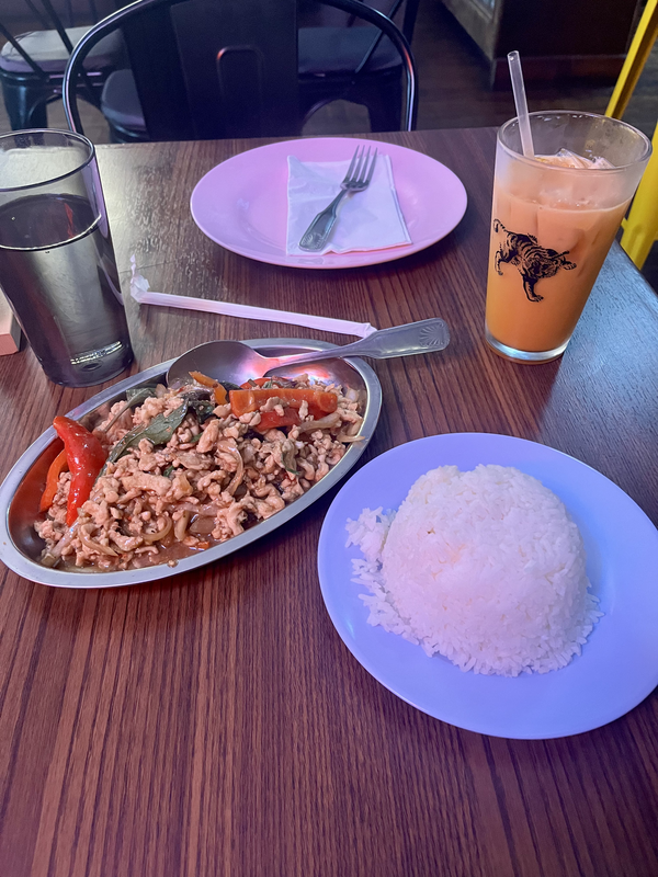 Upon arrival in San Francisco off a five and a half hour flight, my stomach was telling me it was lunchtime. I dropped my bags at my hotel, the Queen Anne Hotel in the Pacific Heights / Japantown neighborhood, and did a quick Google search of the closest restaurants. I landed on Bangkok Street Thai Street Food two blocks down from the Queen Anne. I got a table right away and it was a cozy and chill atmosphere. I ordered a super sweet and delicious Thai iced tea, and enjoyed a meal of Pad Kra Praw, a Thai basil chicken stir fry dish.
