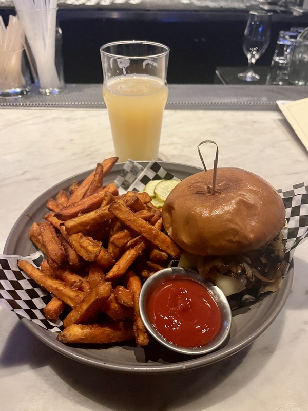 I didn’t have far to go to find this little gem a block away from my conference hotel, the Hilton San Francisco Union Square. Bartlett Hall is a gastropub and brewery that highlights historic elements of San Francisco in a hip space. I enjoyed a hoppy and sweet Pillows of Illusion 6.1% hazy IPA along with a Harvest Burger topped with mixed greens, brie, bourbon caramelized onion, granny smith apple, and garlic squash aioli and a side of sweet potato fries. So good.