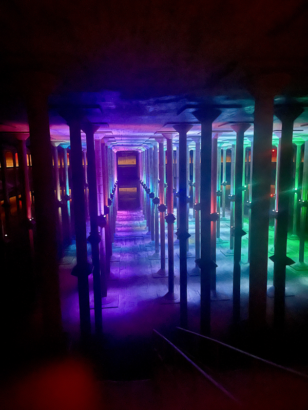 I bought a ticket to the Buffalo Bayou Park Cistern, a 1926 underground cistern that once was a major source for the city’s public water system until it sprang an irreparable leak. The cistern is open for tours on a regular basis, but when I was visiting, there was a special exhibition going on featuring a light show illuminating the cistern. I was the only one there during my time slot and had the whole place to myself, taking a slow saunter around the perimeter of the cistern while mystical music played – it was very relaxing! The pillars reflecting on the water made the room feel like it was twice as tall, but according to the guide that led me in, there is realistically only a few feet of water.