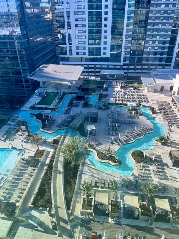 I stayed in the Marriott Marquis Houston conveniently connected to the George R. Brown Convention Center. It’s a beautiful hotel, and features a Texas-shaped lazy river. I hadn’t brought a bathing suit thinking it would be too cold in January, only to see people swimming in it and find out that it is heated! Next time. The hotel also has several dining outlets, including a Starbucks, which was nice so I didn’t have to venture outside for my morning iced coffee fix.