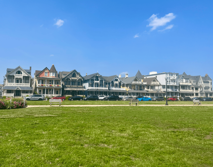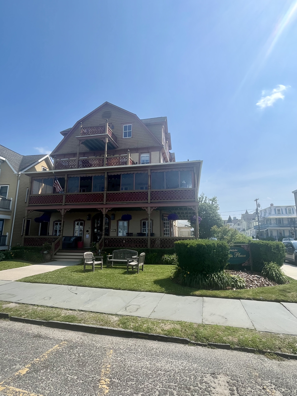 We technically stayed not in Asbury Park itself, but in Ocean Grove just to the south of Asbury. We got a great rate on a room at the Ocean Plaza Hotel, which despite being in Ocean Grove was an easy walking distance to the venue for our concert. Ocean Grove is full of charming Victorian houses, reminding us of our beloved Cape May, and was very quiet and relaxing. The Ocean Plaza Hotel was a Victorian house overlooking a peaceful park one block from the beach, offering cozy rooms, and delicious breakfast buffet on its breezy second story veranda. The 10-15 minute walk from our hotel to the venue took us through quaint neighborhoods and across a footbridge over a body of water called Wesley Lake that separates Ocean Grove from Asbury Park.