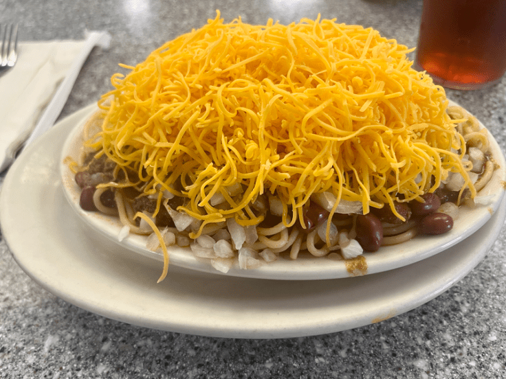 One of Cincinnati’s more unique eats is its chili – it’s a Cincy thing. Cincy-style chili is spiced meat served over spaghetti and heaped with shredded cheddar cheese. Get it as is (a 3-Way), with onions or beans (4-Way), or all of the above (5-Way). And don’t forget the oyster crackers. You can get it at a number of diners throughout Cincy, with one of the most popular chains being Skyline Chili. It’s a great stop for some munchies after a brewery!