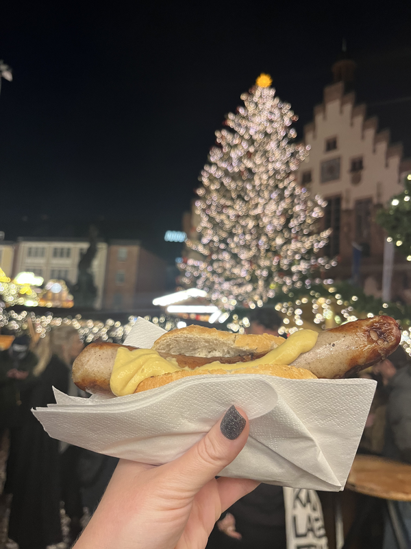 Happily caffeinated, I boarded the S9 to Frankfurt Airport and continued on my way to Gdansk, Poland, with a “bis bald” (bye for now) to Frankfurt. Normally a short stopover for me, I was glad I had some time to leave the airport and experience a little taste of Germany. A rescheduled flight turned into a day of rainy sidewalks, insightful museums, and the wonderful tastes and smells of an authentic German Christmas market. Downtown Frankfurt is well worth leaving the airport for, if your layover allows. I’m sure I’ll be back again to check out that Kleinmarkthalle – and of course get another giant schnitzel!