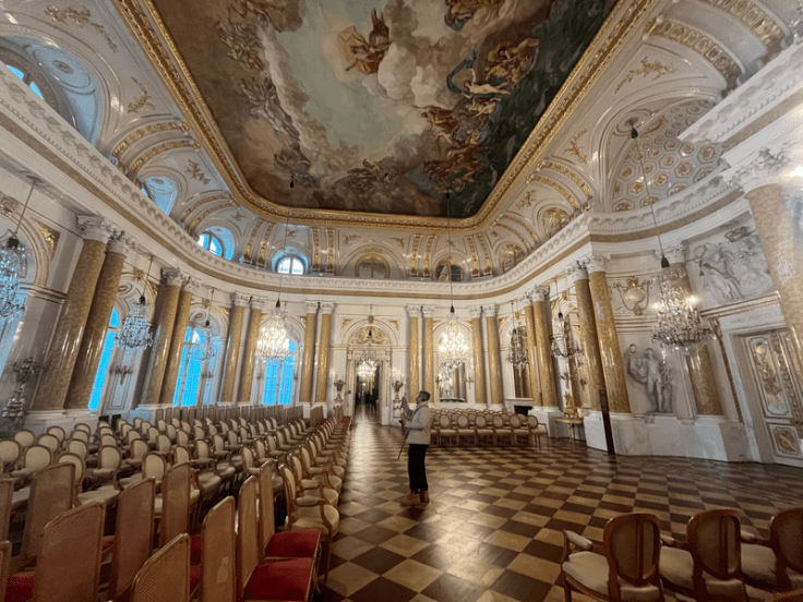 I next visited the Royal Castle in Warsaw. This is a national historical monument that once housed the Polish monarchs. It was entirely destroyed during World War II from a targeted bombing by the German Luftwaffe. It underwent extensive restoration efforts from 1971–1984, and the Castle and surrounding Old Town were declared a UNESCO World Heritage Site in 1980. Today it houses an impressive collection of Polish and European art and the Royal Apartments, restored to appear as they were during the time of King Stanisław August (1764–1795).