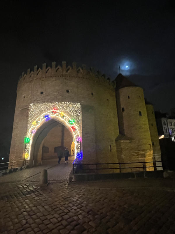 After checking into my hotel, I took a wander around the Old Town area. This settlement dates back to the 13th century. After the devastation of the German bombings in World War II, many of the buildings of Old Town were meticulously reassembled using as many of the original bricks as could be salvaged. In the heart of Old Town is Rynek Starego Miasta (Market Square), which during my visit was activated with an ice rink and food vendors for Christmastime. Along Podwale Street, you can see some of the Old Town’s best-preserved medieval fortifications, including the Barbican.