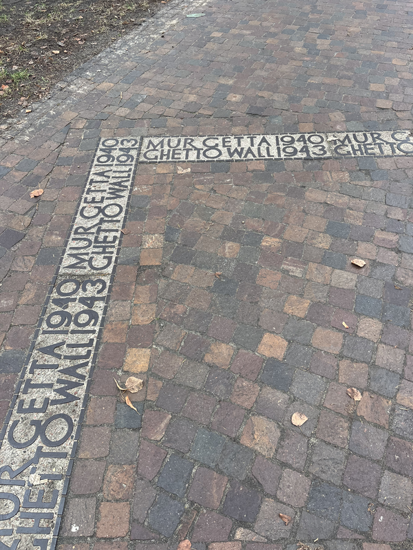 My second day in Warsaw, I set out to visit the POLIN Museum, but along the way stopped off to see the Warsaw Uprising Monument located in Krasiński Square outside the building that houses the Supreme Court of Poland. This bronze monument commemorates the efforts by the Polish resistance to liberate Warsaw from German occupation. Just across the street, I wandered past the reconstructed 1683 Palace of the Commonwealth and the Krasiński Gardens, a great spot for a morning walk. As I came out on the other side of the park, I found a marker noting the location of the ghetto wall during World War II.