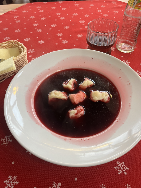 In the midst of my sightseeing, I stopped into Ogród Smaku for a warm bowl of barszcz czerwony (red borscht) a beetroot soup with dumplings that is a Polish favorite for Christmas Eve.