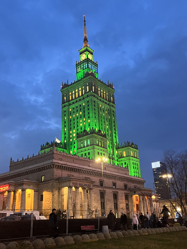 One of the first things I saw when I left Warsawa Centralna station was the Palace of Culture and Science. This highly-contested building is one of the most recognizable buildings in the Warsaw skyline. Built in 1955 as a gift from Joseph Stalin to the people of Poland, the building stands as a painful reminder of Poland’s time under communist rule and there have been talks for years about demolishing the building. In the meantime, this 778-ft. high-rise with a spire and clock tower today houses various cultural and community institutions as well as the City Council offices. It also features an observation terrace for panoramic views of Warsaw. The surrounding parks and grounds also serve as space for community events – during my visit, the Warsaw Christmas Market was taking place. Warsaw has a few Christmas Market areas throughout the city, but the one adjacent to the Palace of Culture and Science is the largest, featuring a Ferris wheel, carnival rides, and food and artisanal vendors. Read more about visiting this as well as other Polish Christmas Markets.