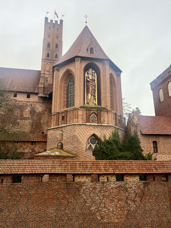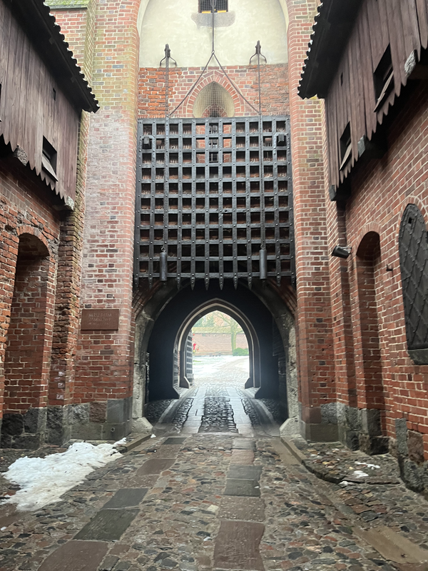 I wandered down the south of the castle to the part of Malbork considered “Old Town.” Malbork’s Old Town is actually fairly modern. After the war, many of its bricks were used in rebuilding the Old Towns of Warsaw and Gdańsk. You can see just a handful of medieval relics in Malbork’s Old Town, including two tower gates that were part of the city’s defense system in the 14th century. Beyond that, it’s a primarily residential area with postwar housing complexes. It was a chilly Wednesday in December, so the town was fairly quiet as I was wandering around, aside from the business corridor along Tadeusza Kościuszki on my walk back to the train station, but I loved walking around Malbork and just experiencing what everyday life looks like in a less-touristy Polish town.