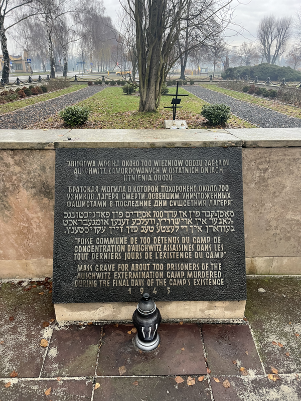The walk from the train station was an interesting contrast to what I was about to see. It was a quiet morning, with an overcast fog hanging over the town as it often does on Polish winter mornings. The walk was a straight shot down Dworcowa, which turns into Obozowa, and takes you past nice residential homes, apartment buildings, and a few public parks. I passed a few people walking dogs or waiting for a bus to work – a glimpse into a normal, daily Oświęcim residential life just steps from the site of World War II’s greatest atrocities. Just before arriving at the Memorial, in what seemed like an unassuming little park, I saw a marker denoting the mass grave of 700 prisoners of Auschwitz who were murdered in the final days of the camp, a sign that I had left the idyllic part of this little Polish town.