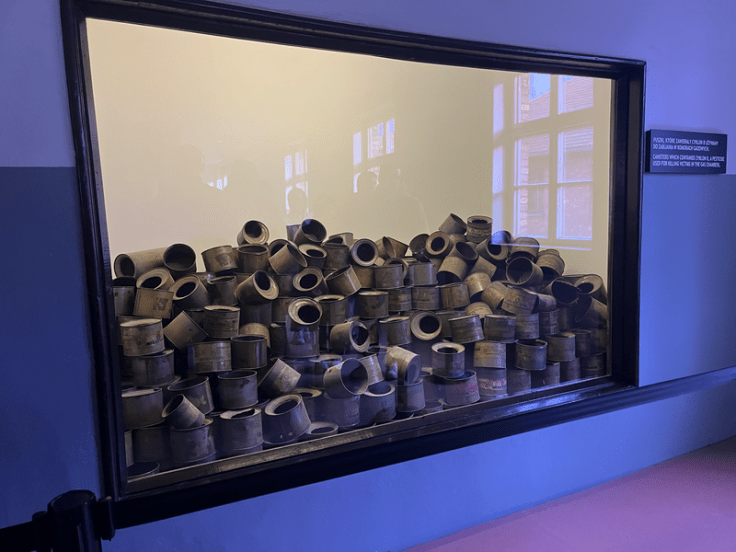 One such location that you cannot photograph is in block 4 in Auschwitz I, known as the “hair room.” Prisoners at Auschwitz had their hair shaved off, and the sick Nazis shipped it off to use in materials like rugs and socks for their soldiers. The hair room features a display case the length of an entire wall with tons of hair braids recovered at Auschwitz after the war. This was the part of Auschwitz that really got to me. I teared up as we were walking through, and still do every time I think of it, even as I write this right now. Other haunting displays at Auschwitz I feature suitcases, pots and pans, shoes, glasses, and artificial limbs all left behind by those murdered, and a wall of empty Zyklon B cans, the chemical agent used in the extermination. The tour of Auschwitz I concludes with a tour of one of the gas chambers.